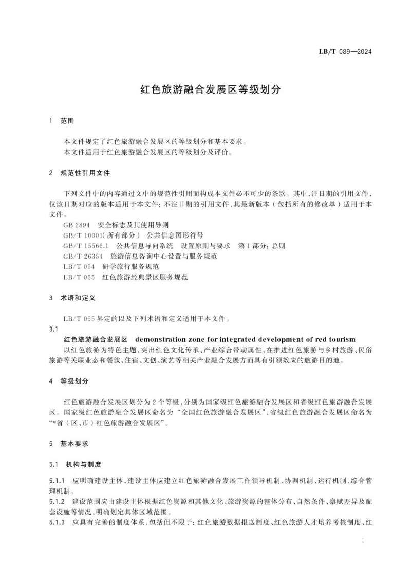 旅游行業標準 LB/T 089-2024 紅色旅游融合發展區等級劃分