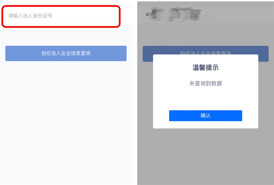 選擇“擔任法人企業信息查詢”,輸入身份證號,即可查詢名下是否有擔任法人的企業。