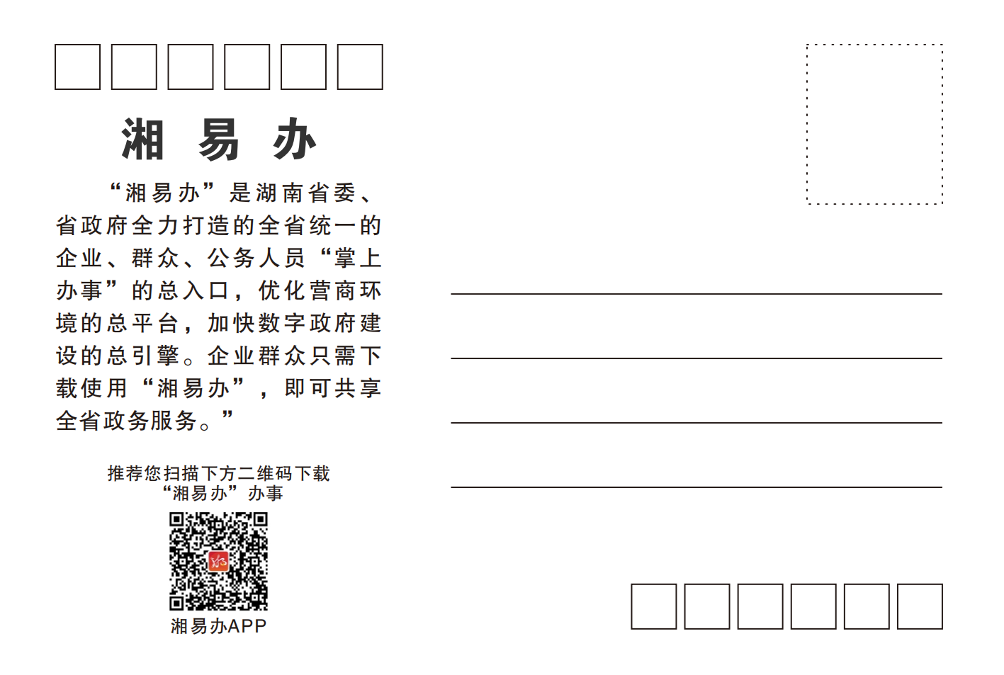 “千年城心 芙蓉等你”湘易辦宣傳明信片