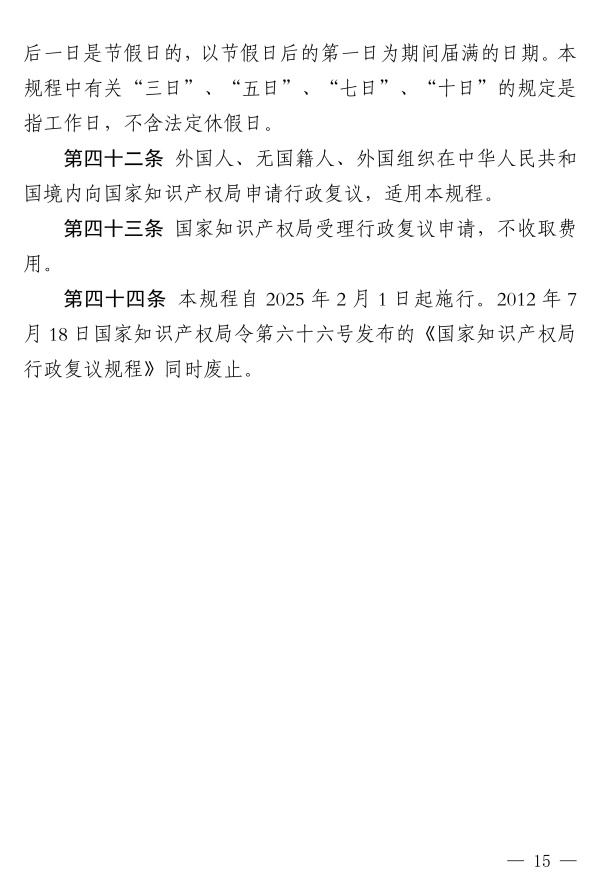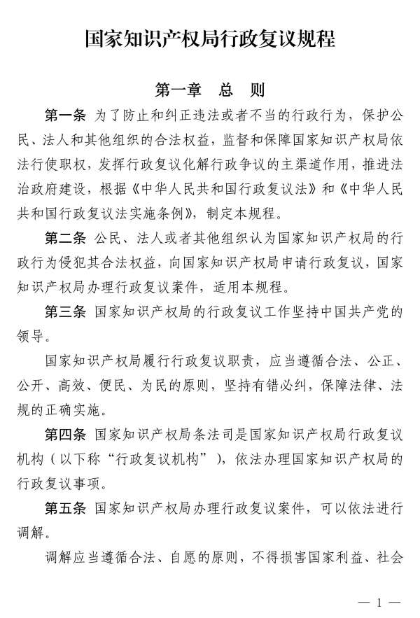 《國家知識產權局行政復議規程》已經2024年12月13日第7次局務會議審議通過,現予公布,自2025年2月1日起施行。