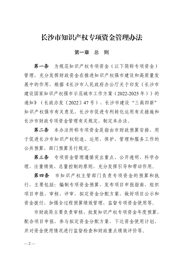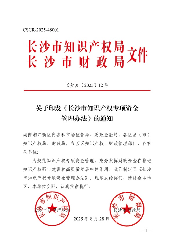 關于印發《長沙市知識產權專項資金管理辦法》的通知